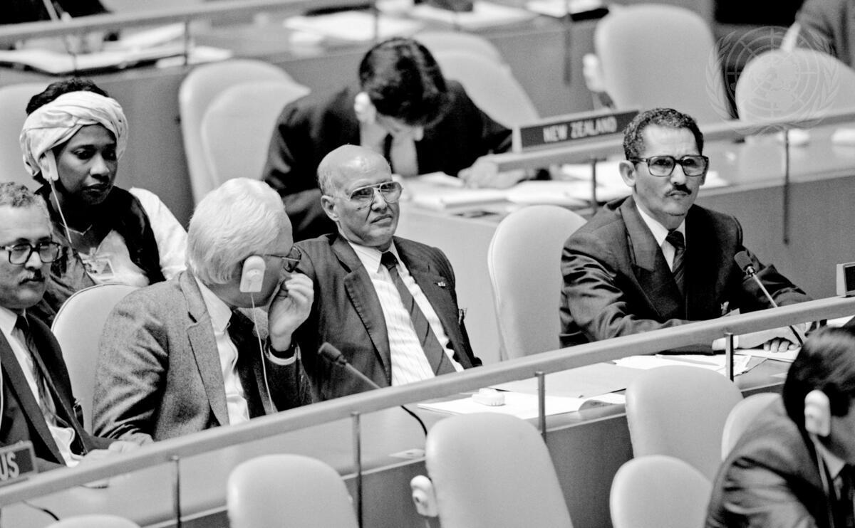 The delegation of Mauritania, headed by Hasni Ould Didi (behind name plate), Minister for Foreign Affairs and Cooperation, attends the 45th session of the General Assembly.