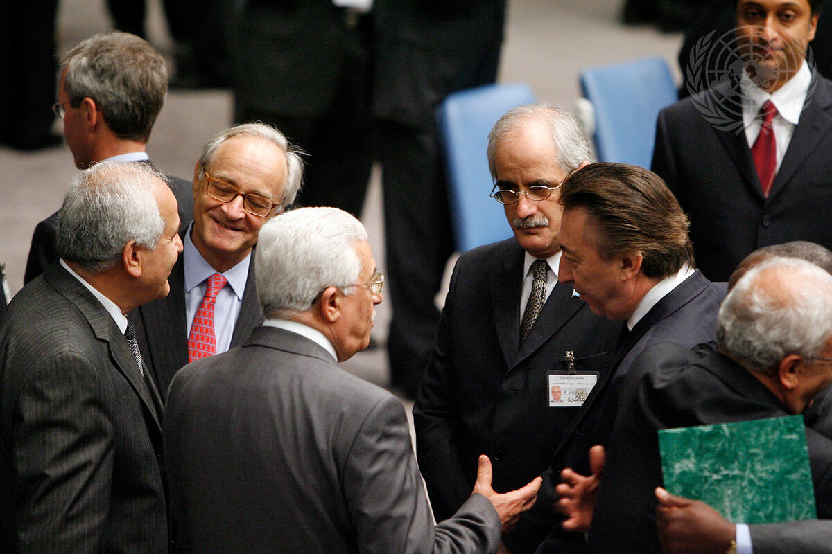 Palestinian Authority President Mahmoud Abbas (centre left, back to camera) at the ministerial-level Security Council meeting on the Middle East.