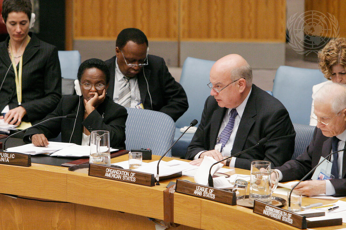José Miguel Insulza (centre), Secretary-General of the Organization of American States (OAS), speaking at the Security Council ministerial-level thematic debate on cooperation between the United Nations and regional organizations in maintaining international peace and security.