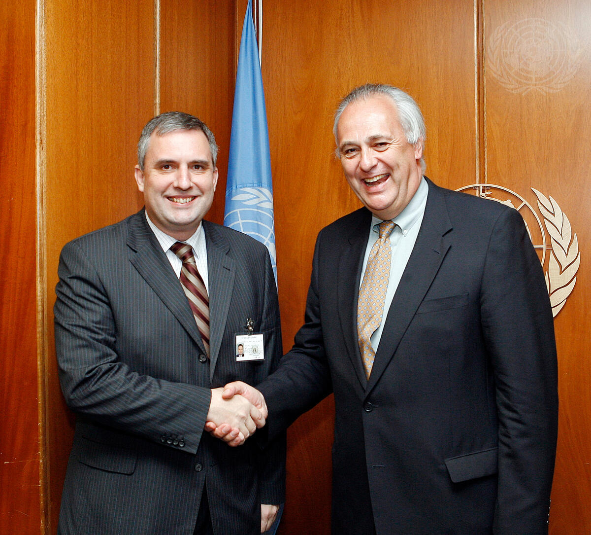 Deputy Secretary-General Mark Malloch Brown (right) meets with Ivailo Kalfin, Deputy Prime Minister and Minister for Foreign Affairs of the Republic of Bulgaria.