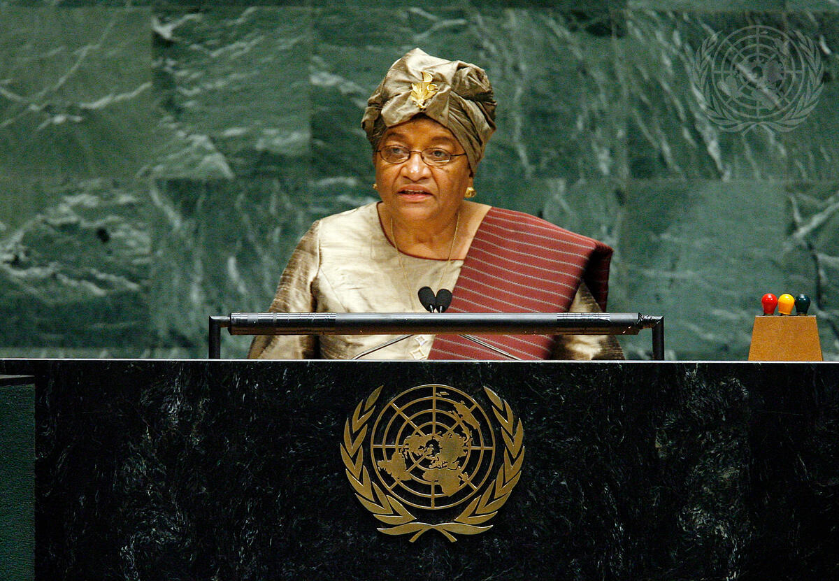 Ellen Johnson-Sirleaf, President of the Republic of Liberia, addresses the general debate of the sixty-first session of the General Assembly, at UN Headquarters in New York.