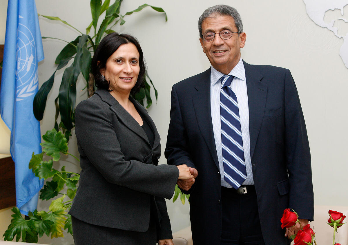 General Assembly President Haya Rashed Al Khalifa (left) meets with Amre Moussa, Secretary-General of the League of Arab States.