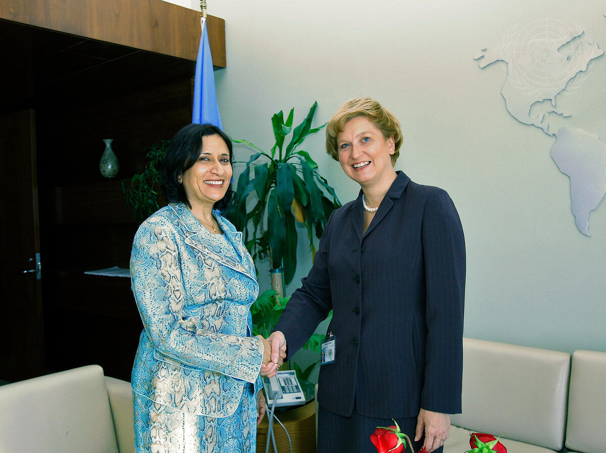 General Assembly President Haya Rashed Al Khalifa (left) meets with Anna Fotyga, Minister for Foreign Affairs of the Republic of Poland.