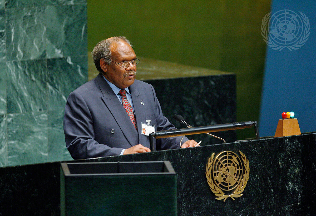 Patteson Oti, Minister for Foreign Affairs of Soloman Islands, addresses the General Assembly high-level meeting on the Mid-term comprehensive global review of the implementation of the Programme of Action for the Least Developed Countries for the Decade 2001-2010, at UN Headquarters in New York.