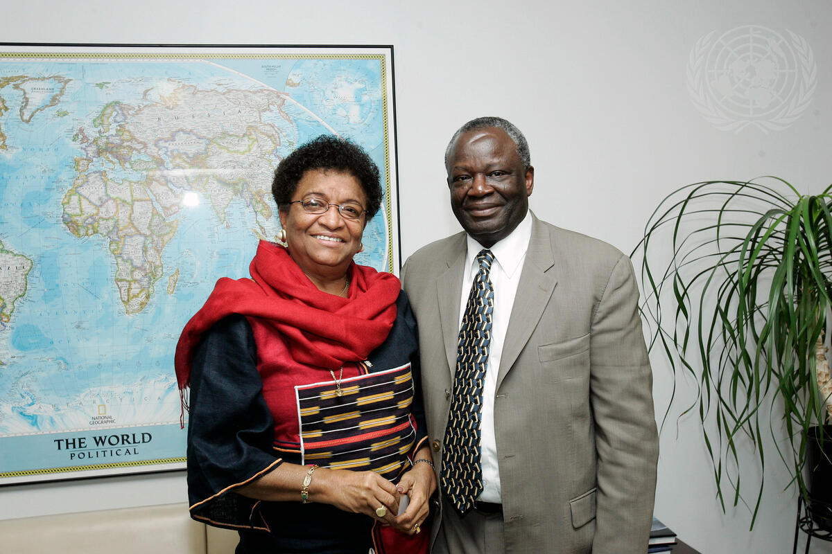 Ibrahim Gambari (right), Under Secretary-General for Political Affairs, pictured with Ellen Sirleaf-Johnson, President-elect of Liberia, today at UN Headquarters in New York.