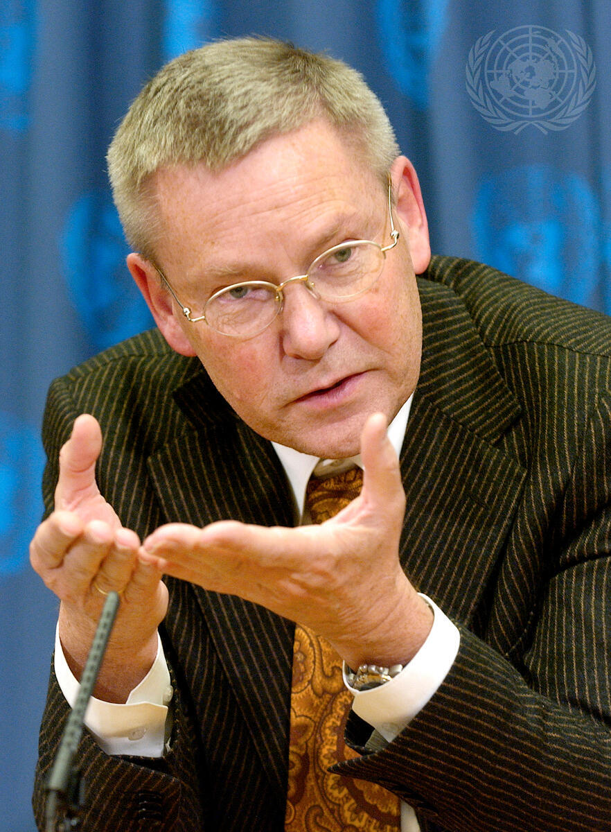 Detlev Mehlis, Commissioner of the International Independent Investigation Commission established pursuant to Security Council Resolutions 1595 and 1636 (2005) briefs news correspondents on the final report probing the assassination of former Lebanese Prime Minister Rafik Hariri, today at UN Headquarters.