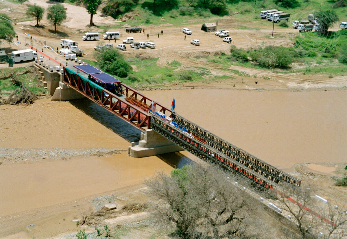An aerial view of the Mereb Bridge on the day of the reopening ceremonies, whicth recreated a physical link between Ethiopia and Eritrea.
