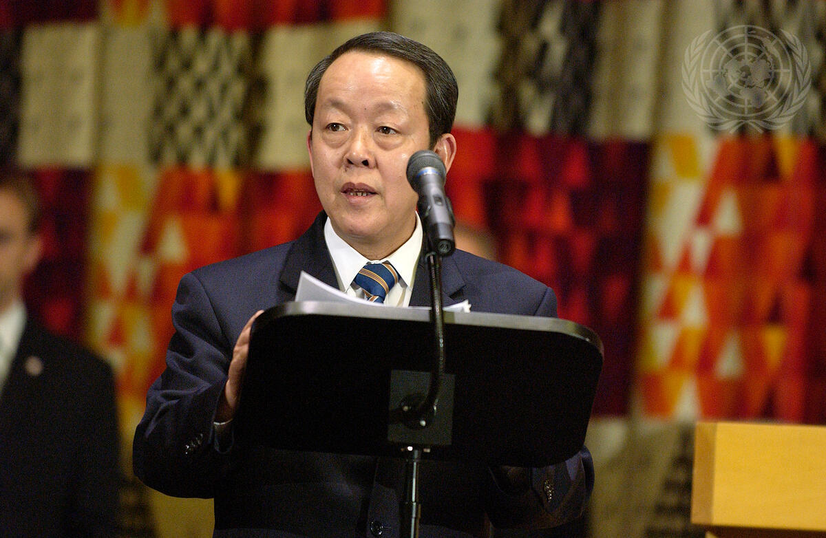 Guangya Wang, Permanent Representative of China to the United nations, and President of the Security Council for April, addresses the ceremony to mark the completion of the International Year of Sport and Physical Education 2005, today at UN Headquarters in New York.