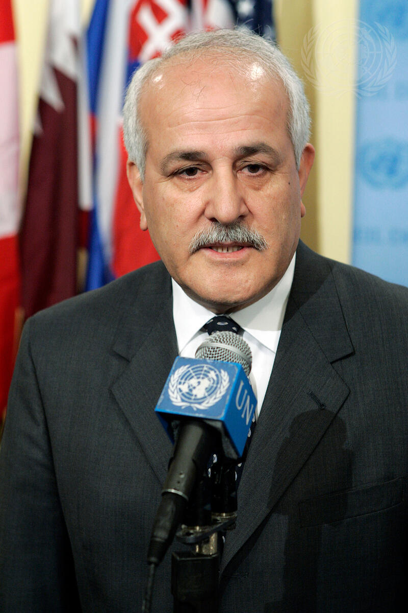 Riyad H. Mansour, Permanent Observer of Palestine to the United Nations, speaks to journalists outside the Security Council, today at UN Headquarters in New York.