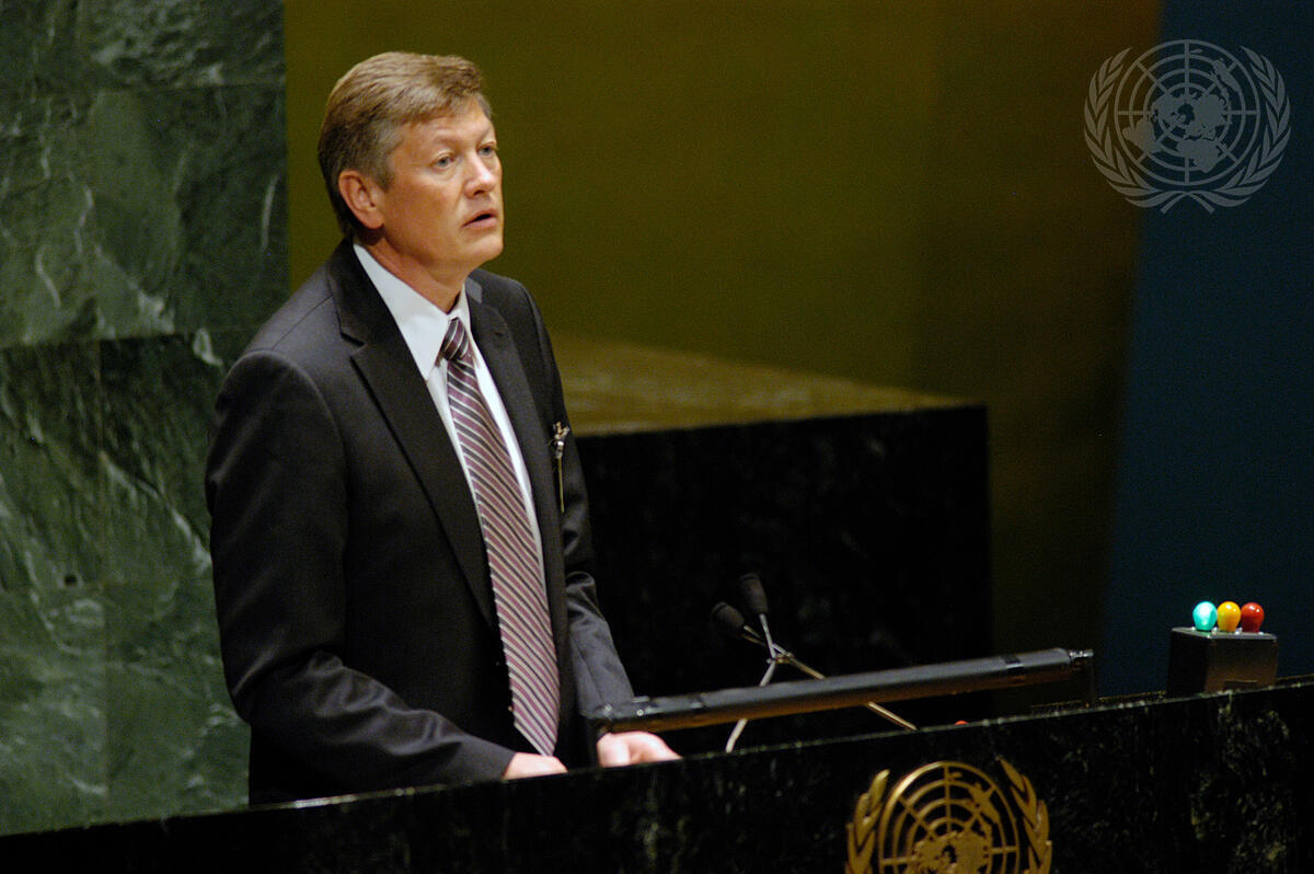 Arturas Paulauskas, Chairman of the Seimas of Lithuania, addresses the World Conference of Speakers of Parliaments convened by the Inter-Parliamentary Union (IPU), today at UN Headquarters.