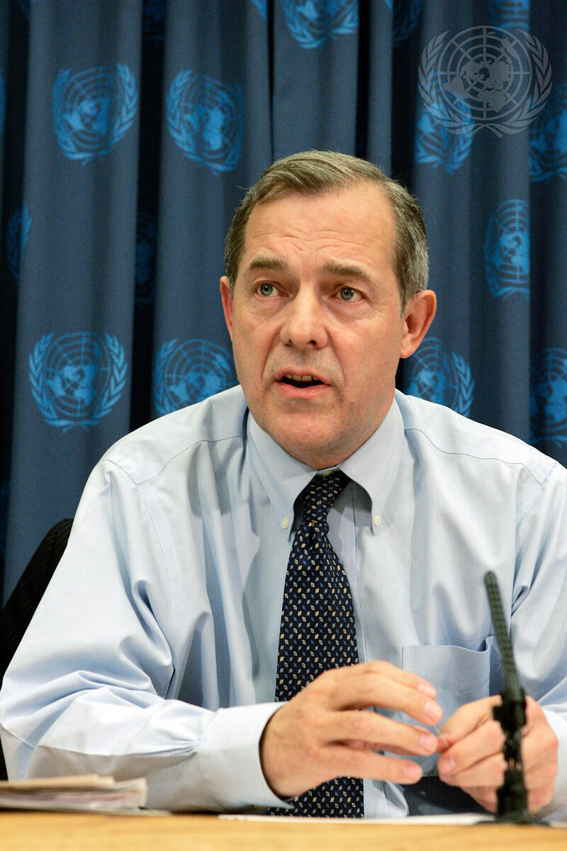 Warran Sach, Assistant Secretary-General for Management, briefs correspondents on the United Nations budget, today at UN Headquarters.