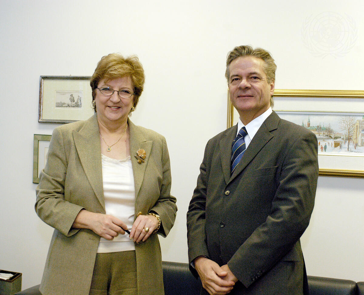 Deputy Secretary-General Louise Fréchette (left) meets with Hervé Cassan, Permanent Observer of the International Organization of la Francophonie who called on her, today at UN Headquarters.