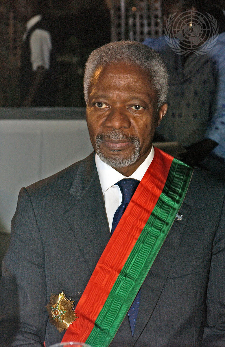 Secretary-General Kofi Annan wears a medal given in his honour. Secretary-General Kofi Annan travelled to Ouagadougou, Burkina Faso, where he met with Blaise Compaoré, President of Burkina Faso, after which he attended a state banquet hosted by the President in his honour.