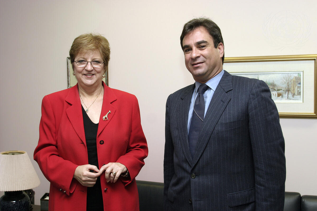 Deputy Secretary-General Louise Fréchette (left) meets with Jorge Skinner-Klée Arenales, Permanent Representative of Guatemala to the United Nations.