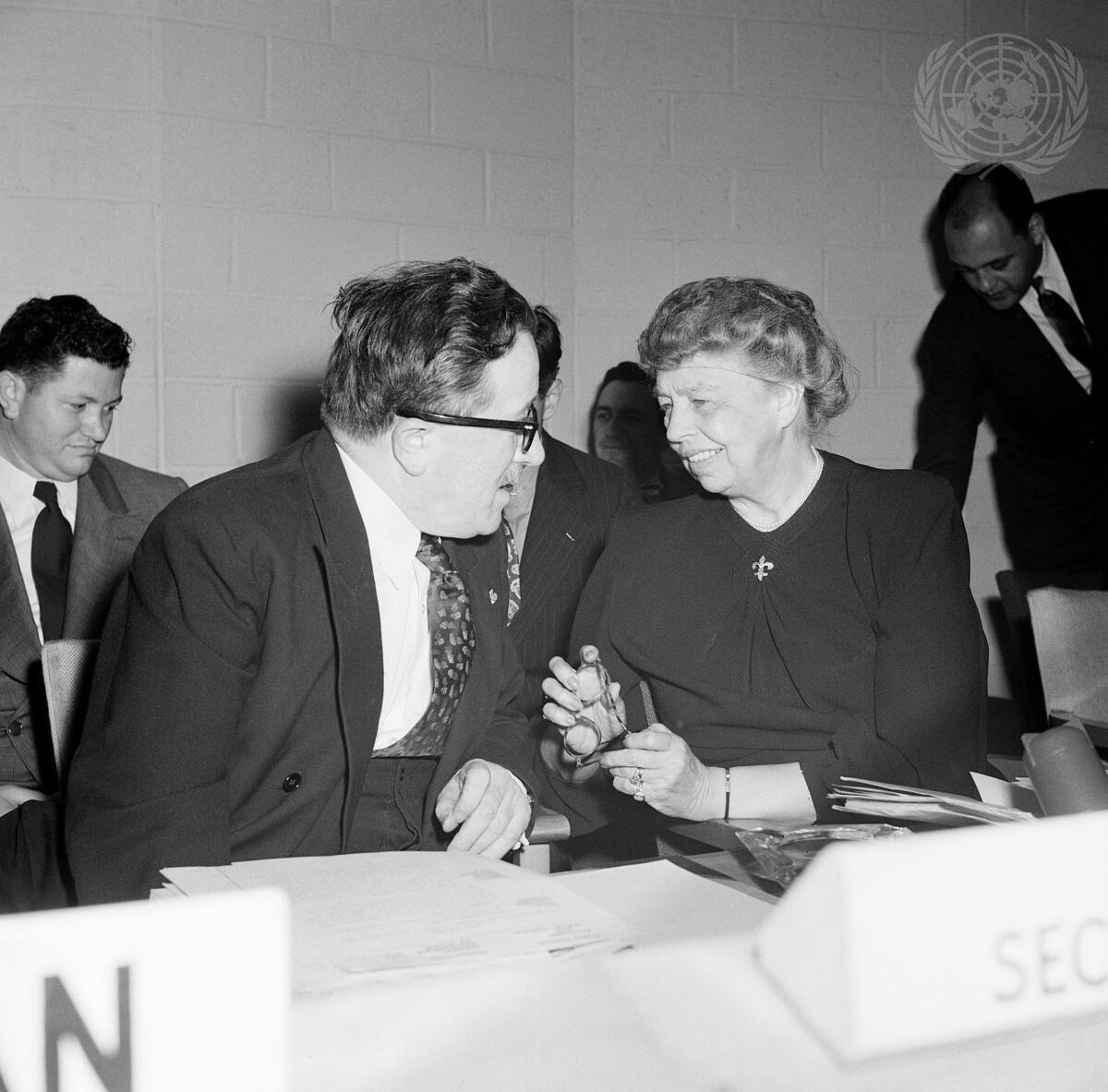 Henri Laugier, UN ASG in charge of Department of Social Affairs; Mrs. Eleanor D. Roosevelt, USA, chairman. First meeting, 9 June 1947.