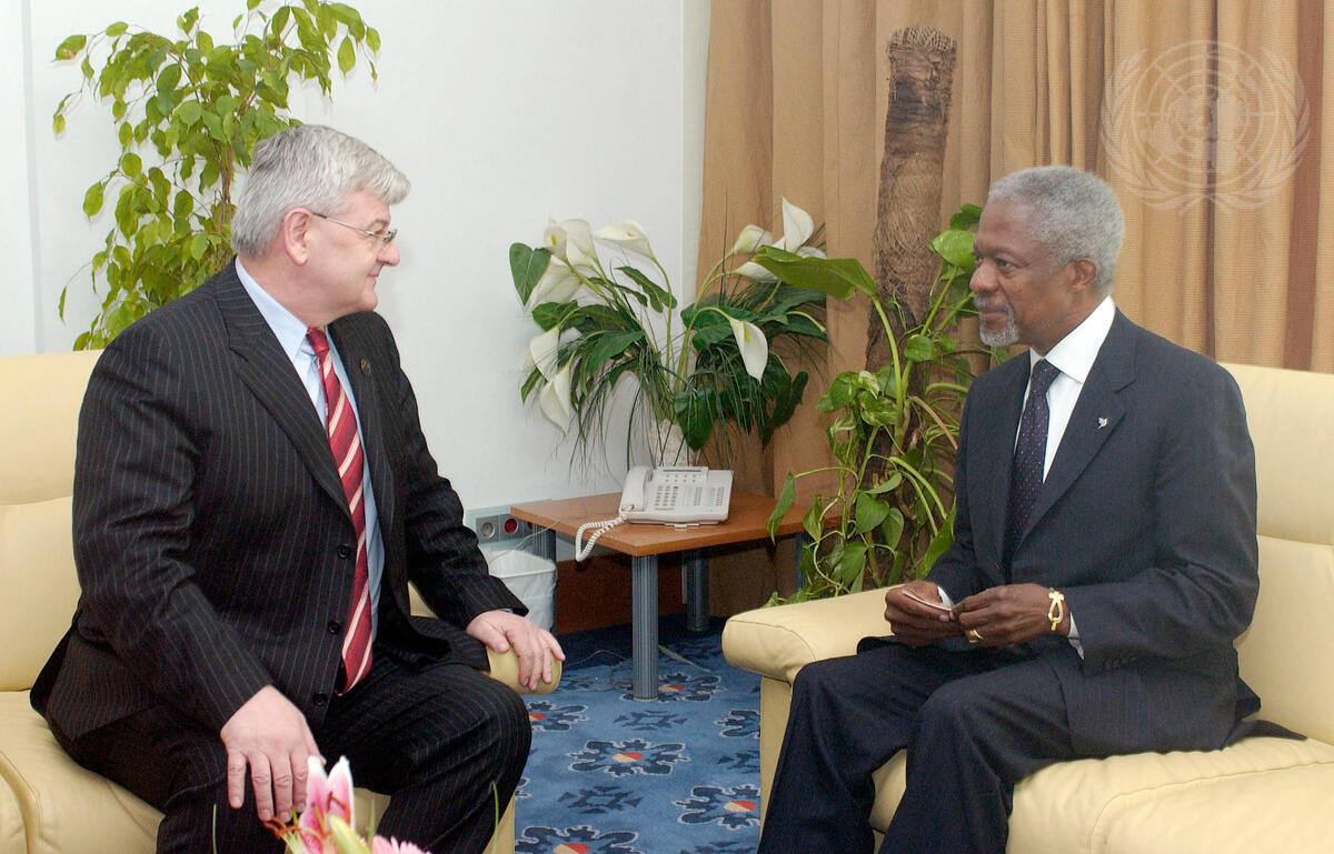 Secretary-General Kofi Annan (right) meets with Joschka Fischer, Minister for Foreign Affairs of Germany. The Secretary-General arrived in Sharm El Sheikh, Egypt late this afternoon to attend the international conference on Iraq, during which he held bilateral discussions.