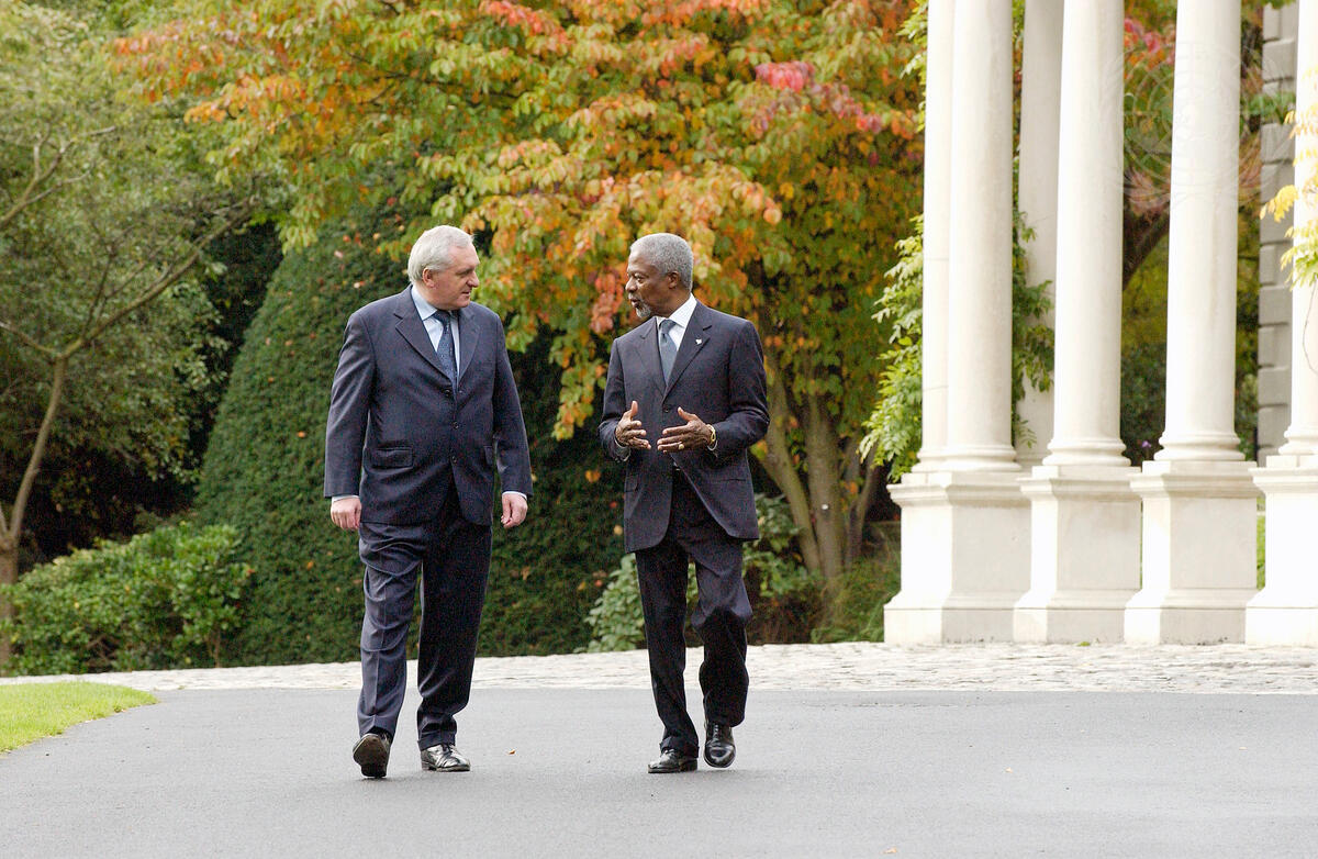 Secretary-General Kofi Annan (right) meets with Bertie Ahern, Prime Minister of Ireland, at Farmleigh House.