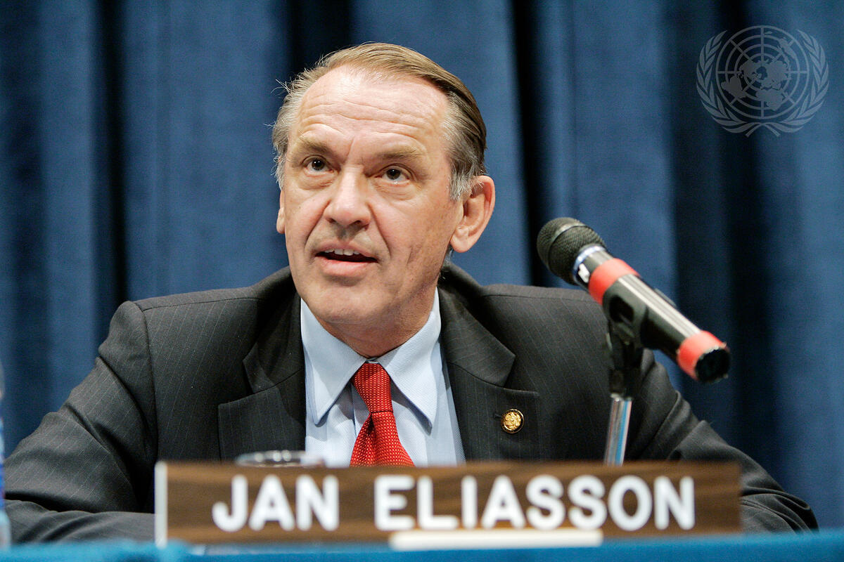 Jan Eliasson, Ambassador of Sweden to the United States, addresses participants at the book launch for ""Human Security for All: a Tribute to Sergio Vieira de Mello"".
