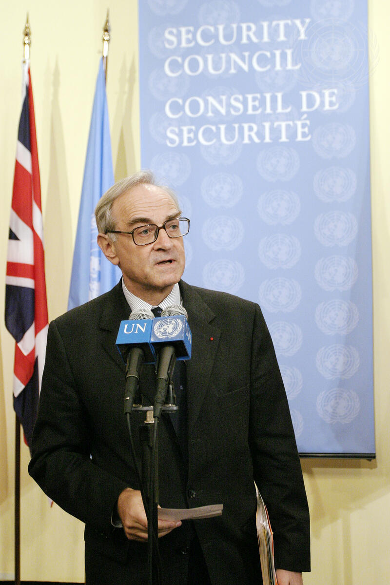 Jean-Marc de La Sablière, Permanent Representative of France to the United Nations, addressing correspondents after today's Council meeting on the situation in Côte d?Ivoire.