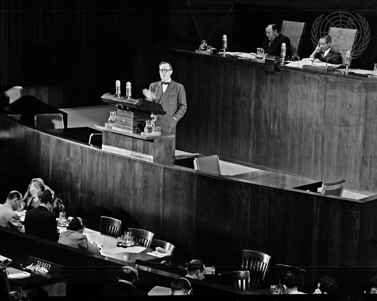 Mr. L. B. Pearson, M.P., Secretary of State for External Affairs of Canada and Chairman of his Delegation, addresses a plenary meeting.