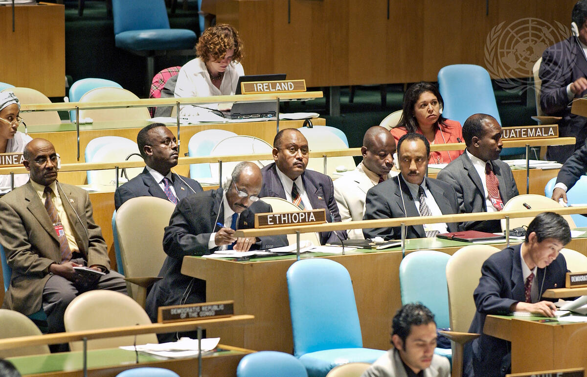 The delegation of the Federal Democratic Republic of Ethiopia, headed by Seyoum Mesfin (behind nameplate), Minister for Foreign Affairs of the Federal Democratic Republic of Ethiopia, at the fifty-ninth session of the General Assembly.