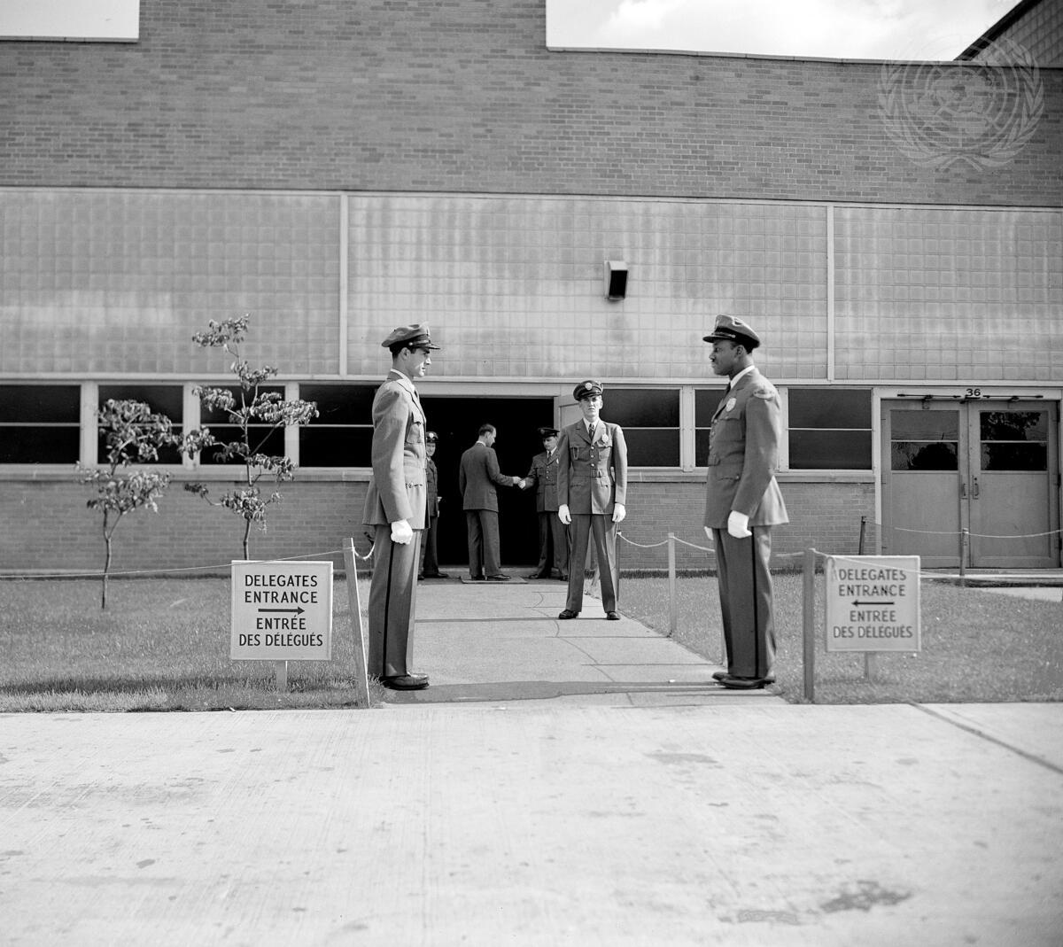 United Nations Security Officers at work at the interim headquarters of the United Nations at Lake Success. [No exact date]