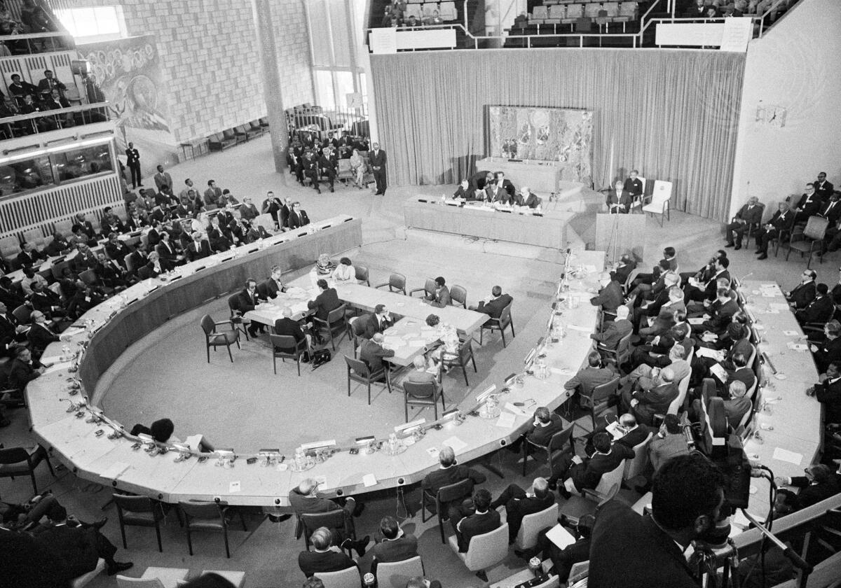 A general view of the opening meeting of the Council as it was addressed by President Ould DADDAH of Mauritania, current Chairman of the Asssembly of Heads of State and Government of the OAU.