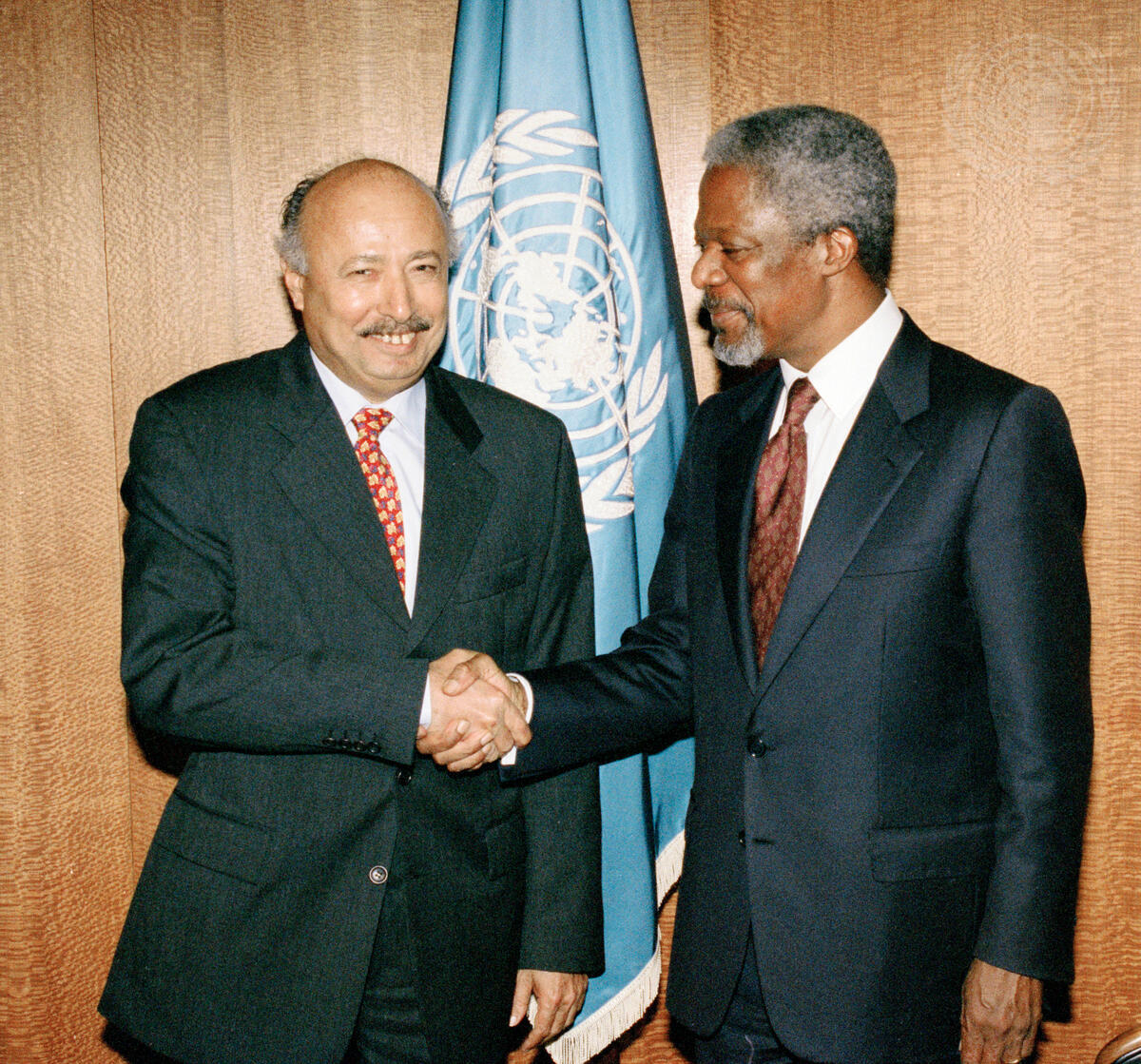 Secretary-General Kofi ANNAN (right) greets Rashid Abdullah AL-NOAIMI, Minister for Foreign Affairs of the United Arab Emirates.