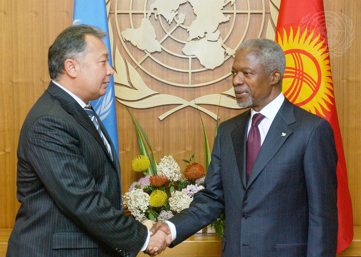 Secretary-General Kofi Annan (right) meets with Kumanbek Bakiev,