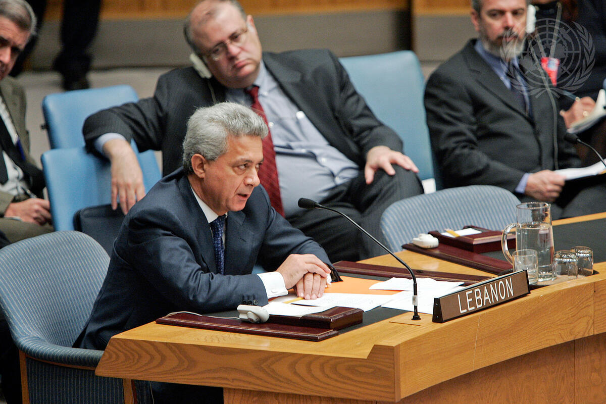 Fawzi Salloukh, Foreign Minister of Lebanon, addresses the Security Council, today at UN Headquarters. The Council unanimously adopted resolution 1636 (2005) calling on Syria to detain Syrian suspects identified by the UN International Independent Investigation Commission into the assassination of former Lebanese Prime Minister Rafik Hariri or face ""further action"" if it does not comply.