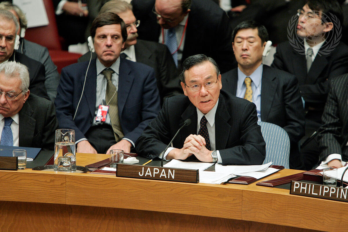 Kenzo Oshima, Permanent Representative of Japan to the United Nations, addresses the Security Council, today at UN Headquarters. The Council unanimously adopted resolution 1636 (2005) calling on Syria to detain Syrian suspects identified by the UN International Independent Investigation Commission into the assassination of former Lebanese Prime Minister Rafik Hariri or face ""further action"" if it does not comply.