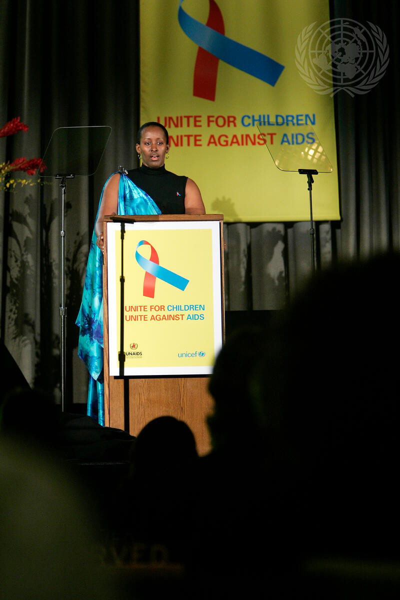 Jeannette Kagame, first lady of Republic of Rwanda, speaking at the launching of the new global campaign: ""Unite for Children. United Against AIDS"", which UNICEF is conducting with its partners, today at UN Headquarters.