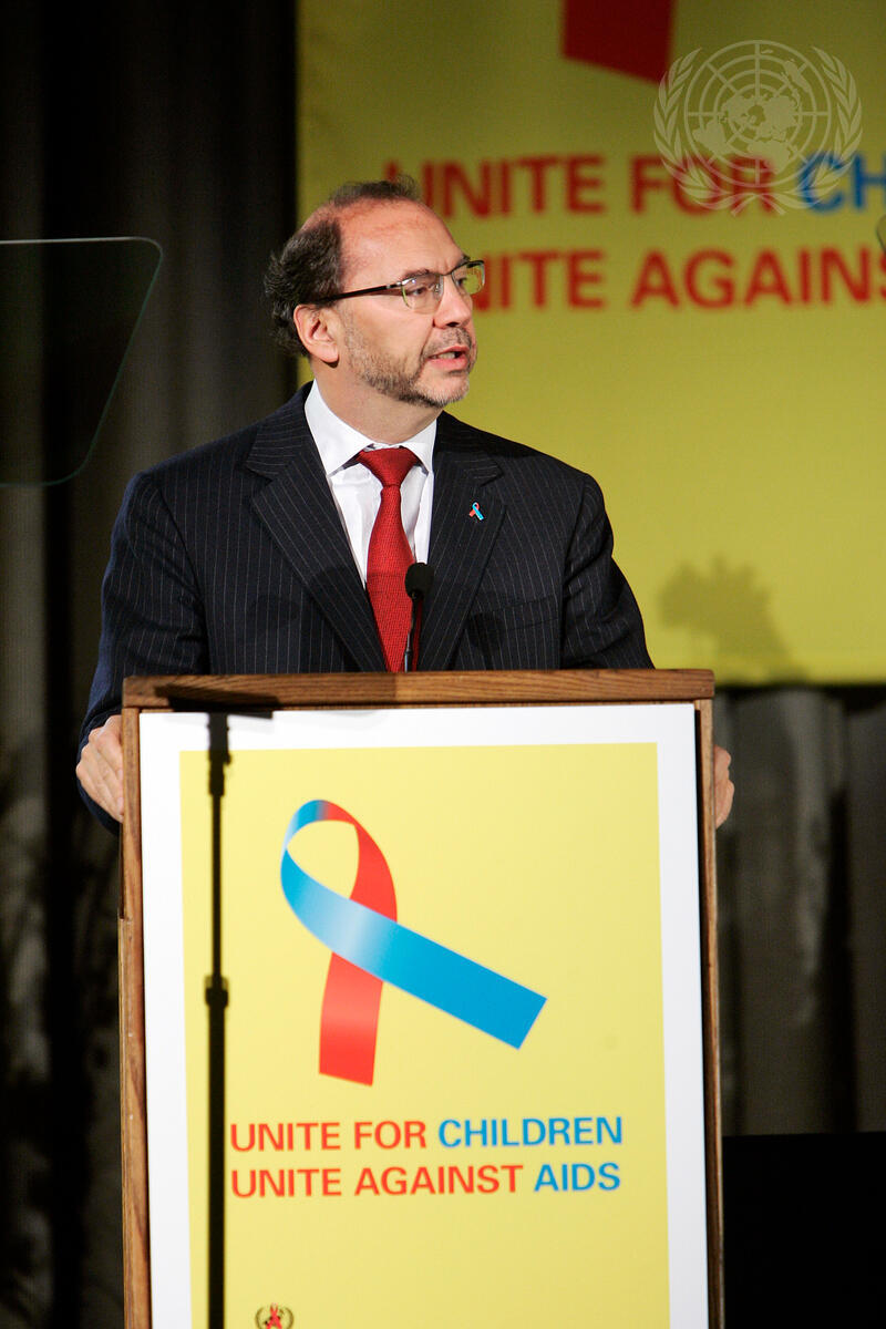 Peter Piot, Executive Director of the Joint United Nations Programme on HIV/AIDS (UNAIDS) speaking at the launching of the new global campaign: ""Unite for Children. United Against AIDS"", which UNICEF, along with UNAIDS is conducting with its partners, today at UN Headquarters.
