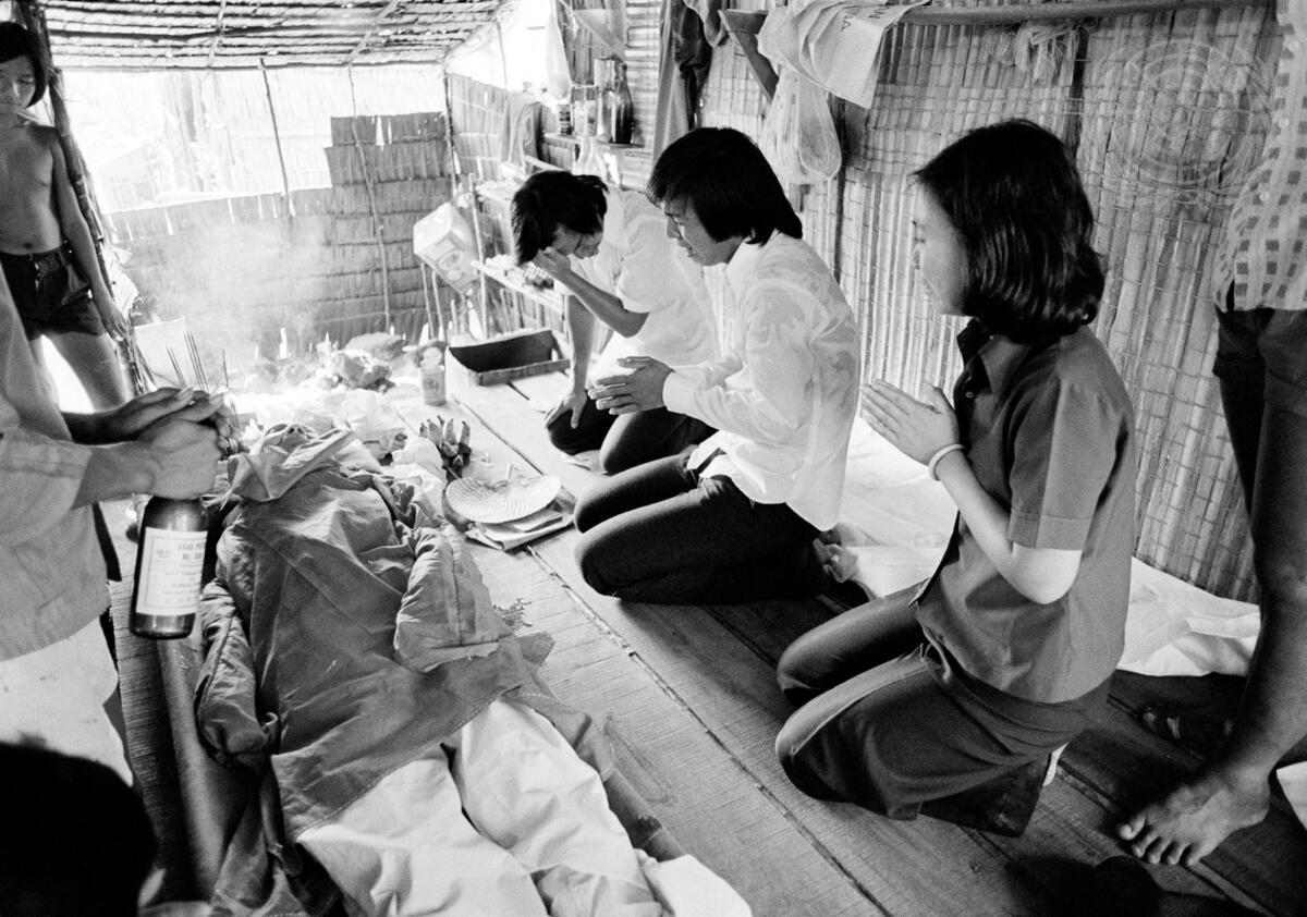 A Vietnamese refugee family mourning over the body of their dead father at the Kijang refugee camp on Bintan Island, Indonesia