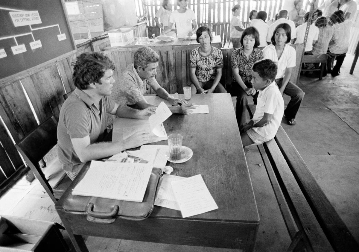 United States Immigration officials interviewing a young Vietnamese refugee at the Cherating refugee camp in Kuantan, Malaysia.