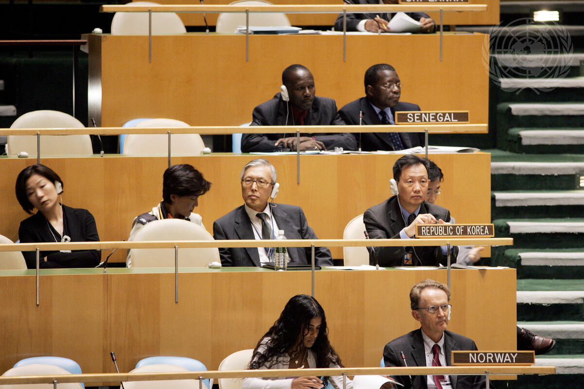 The delegation of the Republic of Korea at the sixtieth session of the General Assembly. The annual general debate of the United Nations General Assembly takes place over a 10-day period beginning on 17 September 2005, focusing on the follow-up to the World Summit.