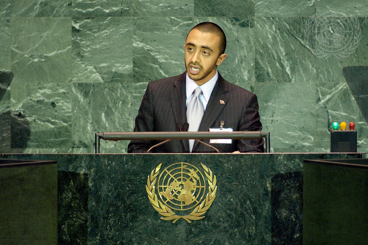 Sheikh Abdullah Bin Zayed Al Nahyan, Minister of Information and Culture and Personal Representative of the President of the United Arab Emirates, addresses the High-level Plenary Meeting of the Sixtieth Session of the UN General Assembly (2005 World Summit) today at UN Headquarters. The World Summit, being held from14-16 September 2005, is the largest gathering of world leaders in history.