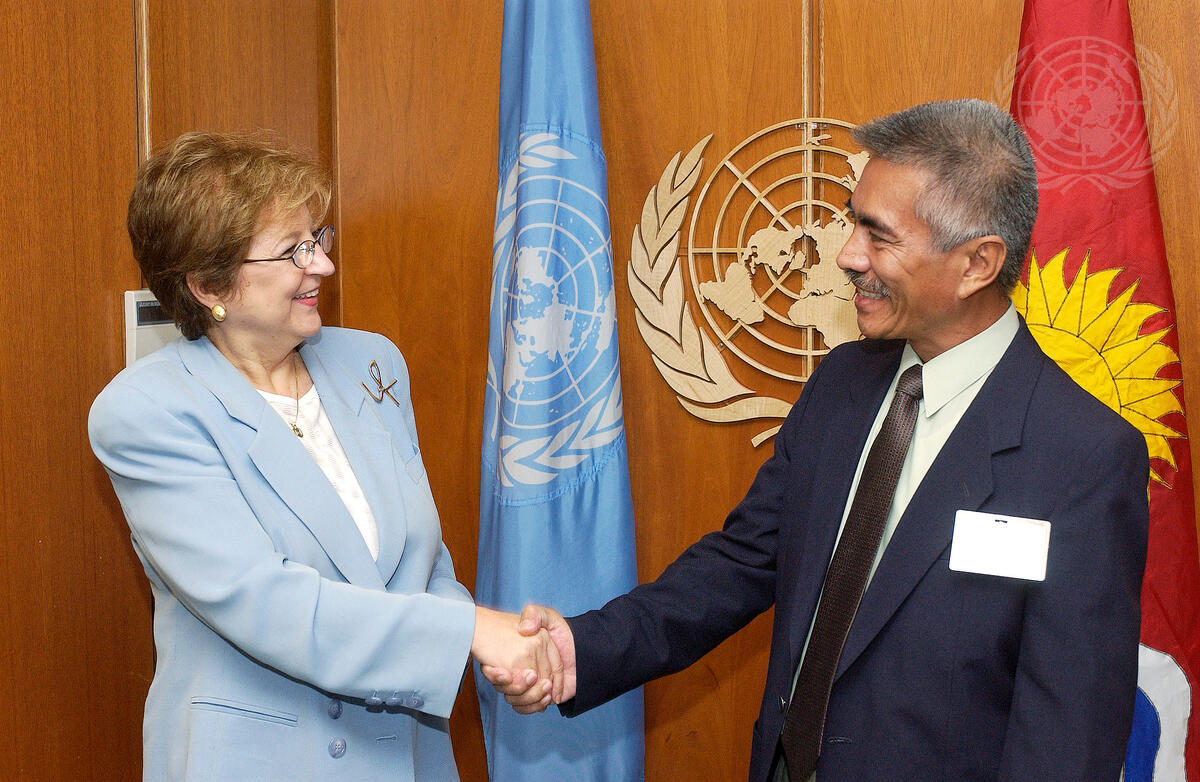 Deputy Secretary-General Louise Fréchette (left) meets with Anote Tong, President of the Republic of Kiribati.