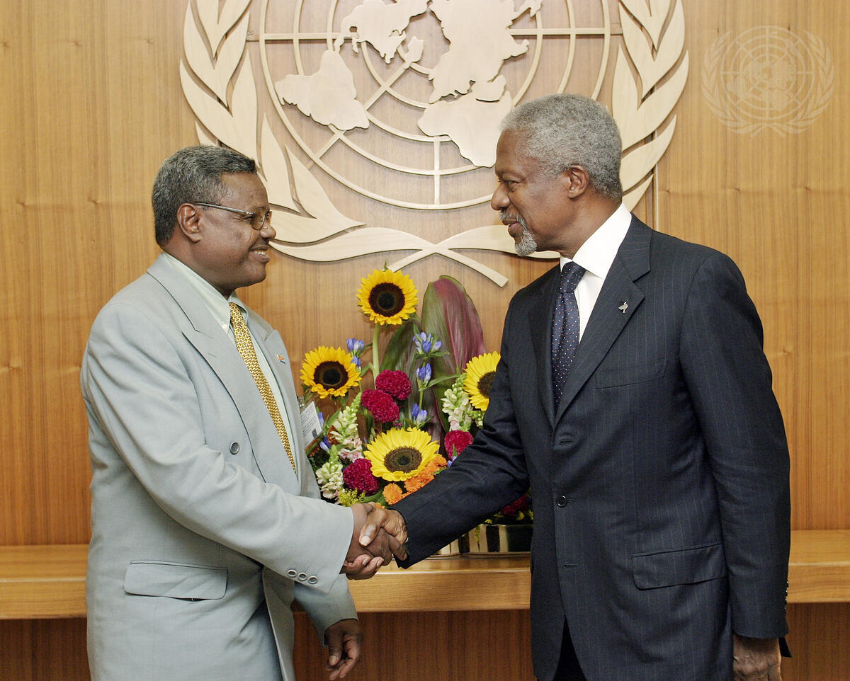 Secretary-General Kofi Annan (right) meets with Ali Said Abdella, Minister for Foreign Affairs of Eritrea.