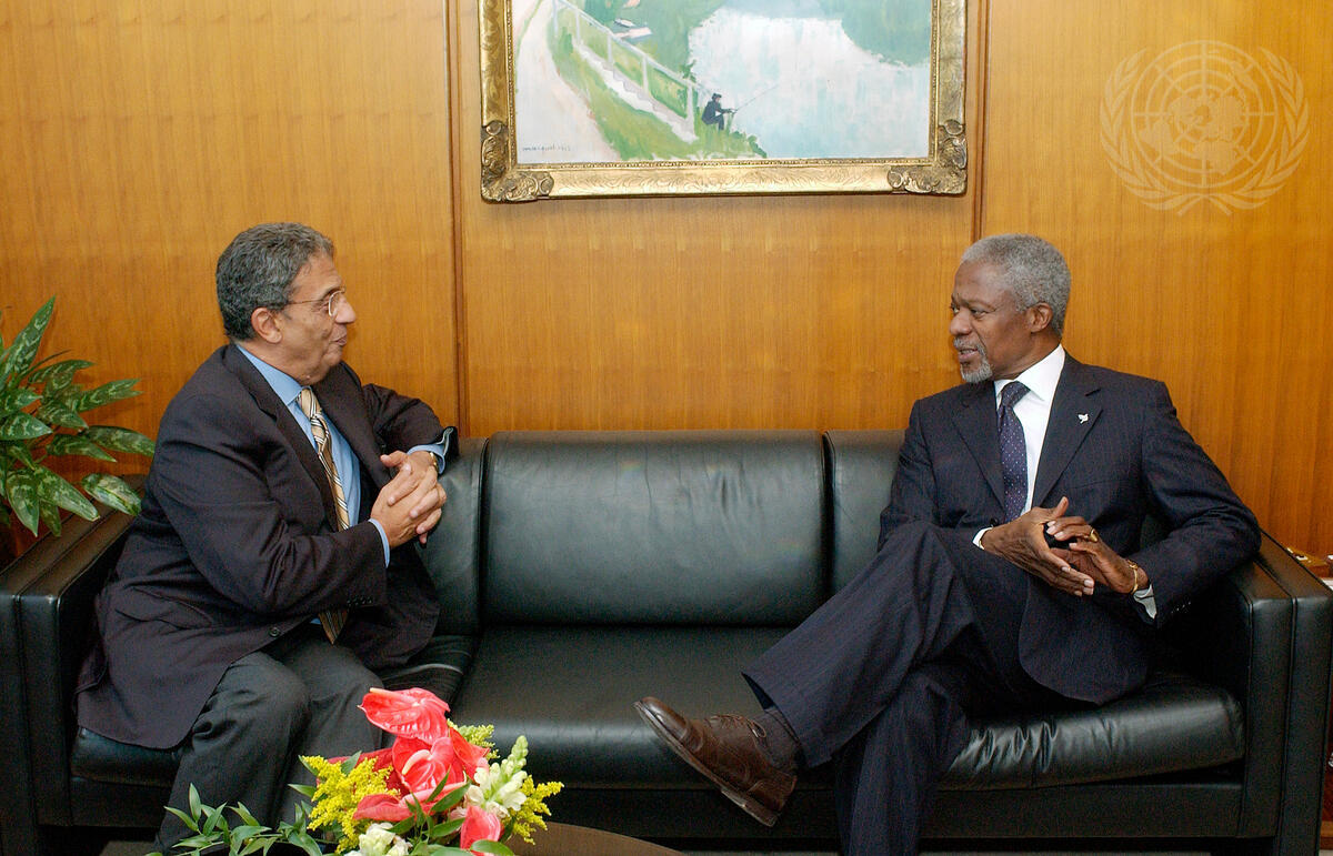 Secretary-General Kofi Annan (right) meets with Amre M. Moussa, Secretary-General of the League of Arab States.