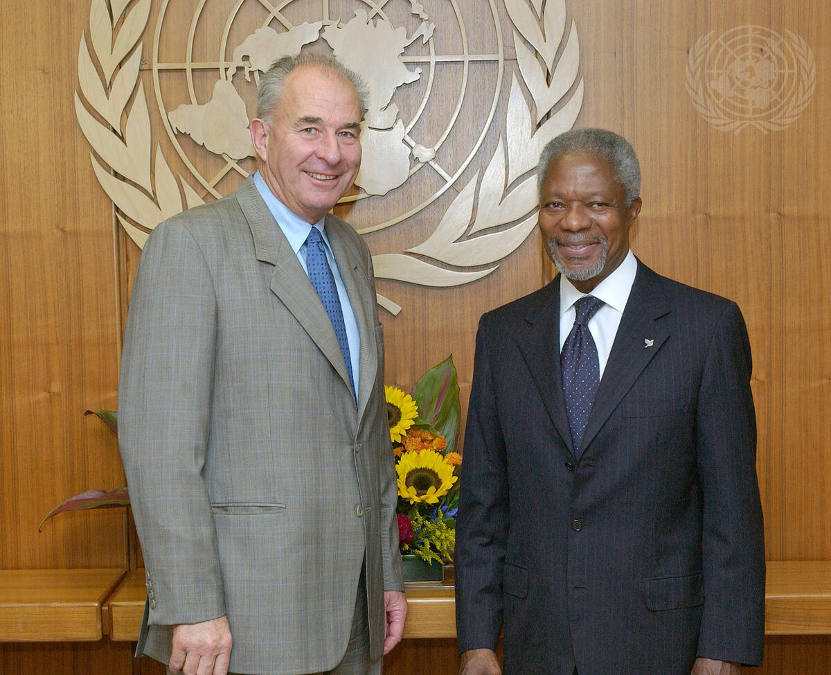 Secretary-General Kofi Annan (right) meets with Donald C. McKinnon, Secretary-General of the Commonwealth Secretariat.