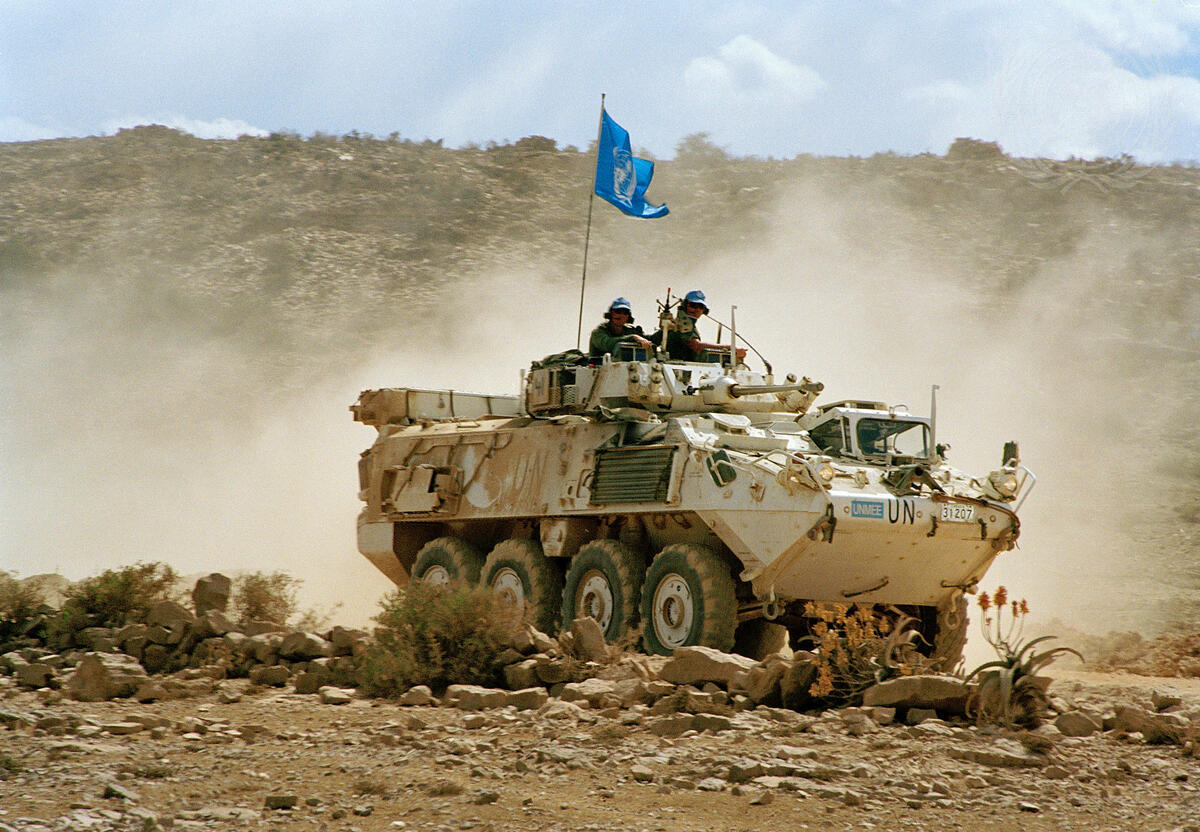 UNMEE Armoured Personnel Carrier (APC) patrols the area of Senafe.