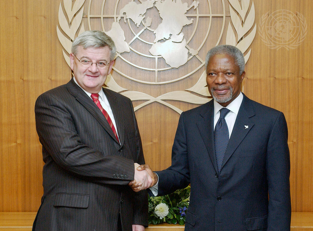 Secretary-General Kofi Annan (right) meets with Joschka Fischer, Minister for Foreign Affairs of Germany.