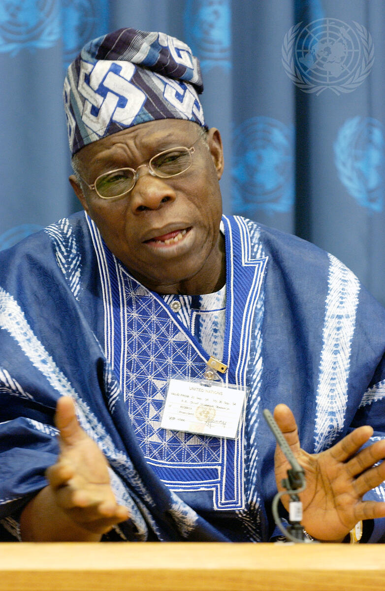 Olusegun Obasanjo, President of Nigeria, addressing correspondents.