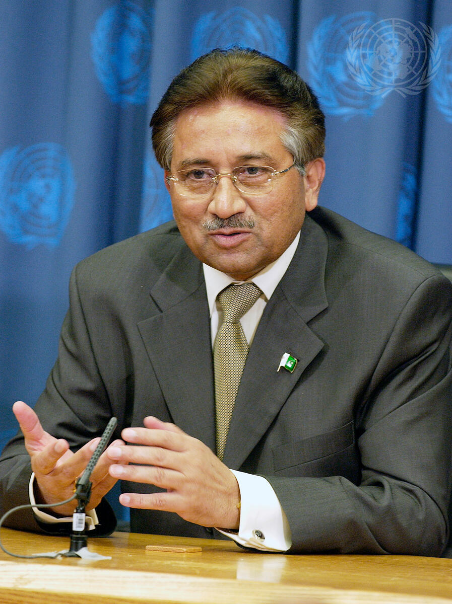 Pervez Musharraf, President of Pakistan, addressing correspondents.