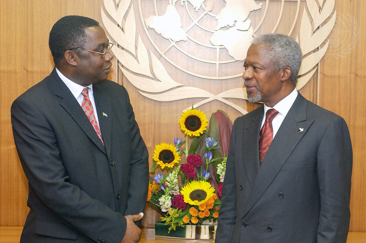 Secretary-General Kofi Annan (right) meets with Momodu Koroma, Minister for Foreign Affairs of the Republic of Sierra Leone.