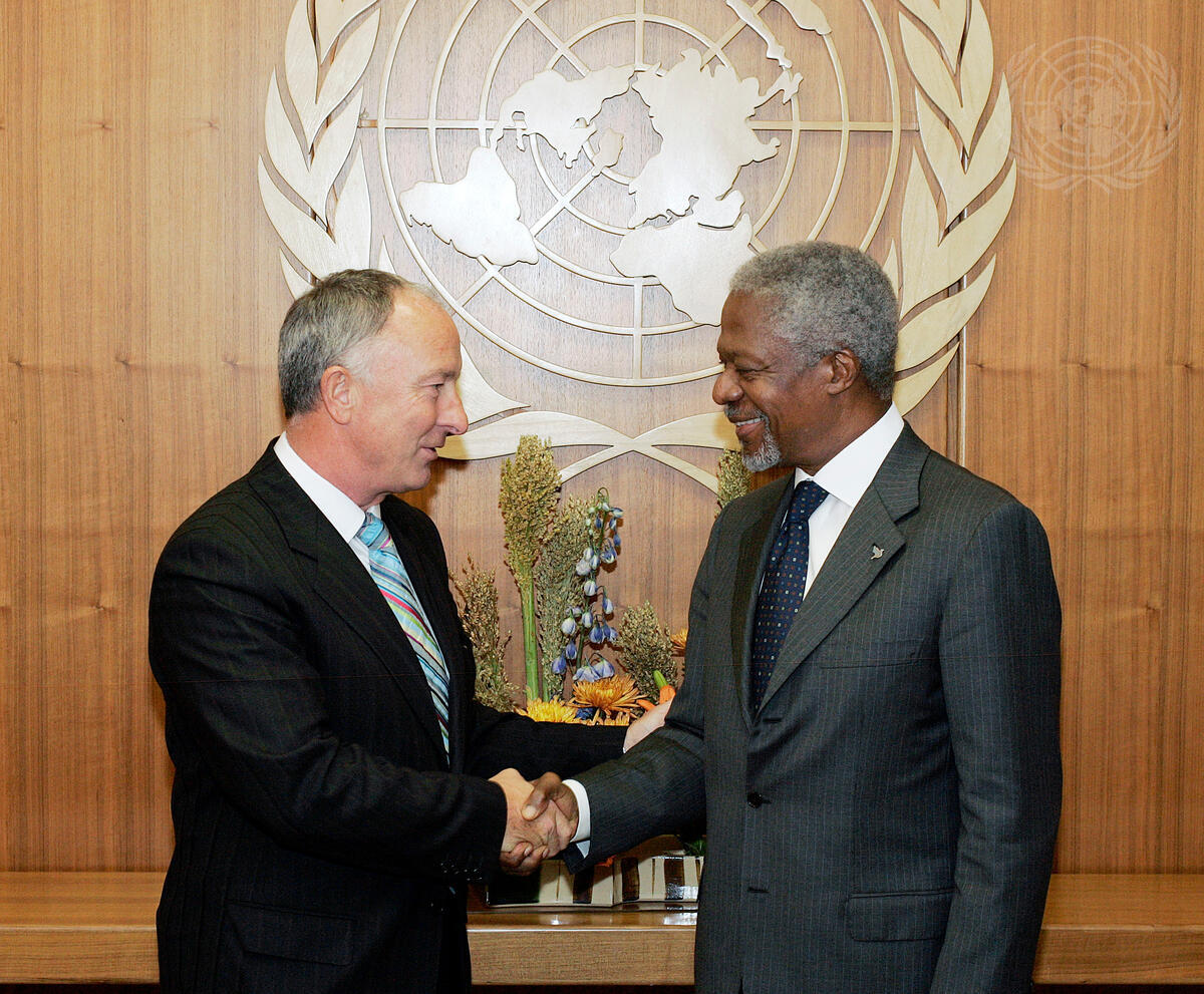 Secretary-General Kofi Annan (right) meets Dermot Ahern, T.D., Foreign Minister of Ireland, at UN Headquarters in New York.