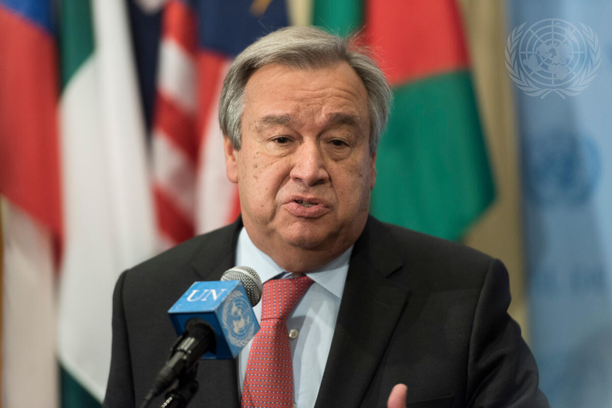 António Guterres, UN High Commissioner for Refugees (UNHCR), speaks to journalists, following a Security Council meeting on the continuing conflict in Syria and the attendant humanitarian and refugee crises.