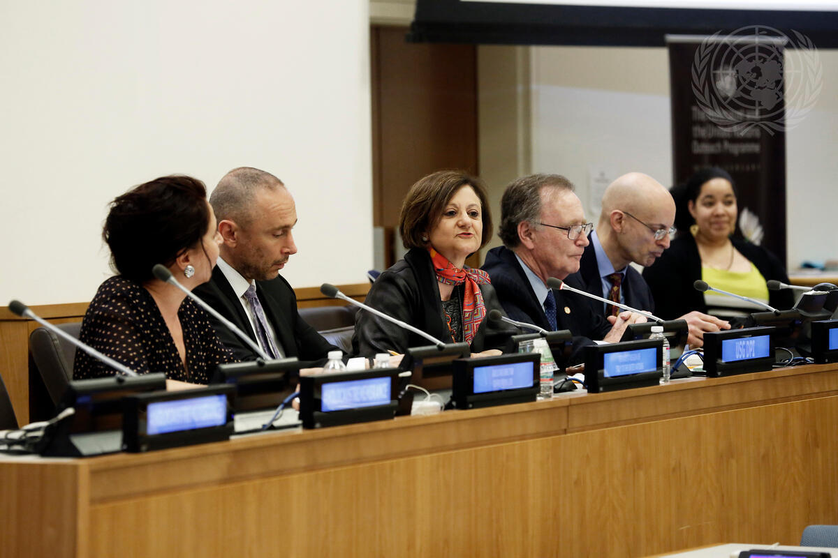 Cristina Gallach (third from left), Under-Secretary-General for Communications and Public Information, speaks during the event, “Toscanini – A Conductor Stands Up for Justice”, organized by the United Nations Department of Public Information’s Holocaust and the United Nations Outreach Programme in partnership with the Permanent Mission of Italy to the United Nations and B’nai B’rith International.