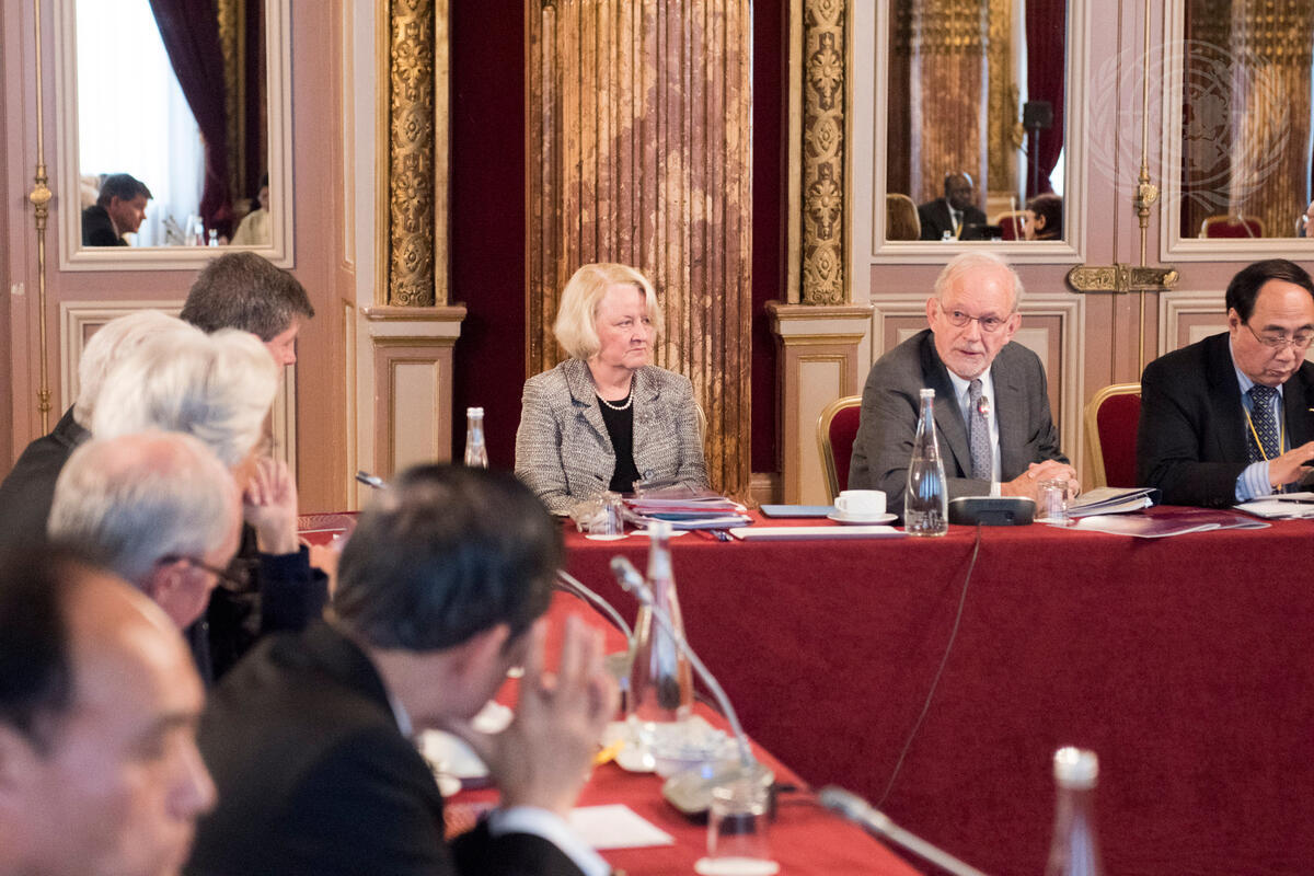 Anthony Lake (second from right), Executive Director of the UN Children’s Fund (UNICEF), during the two-day session of the UN Chief Executives Board (CEB), taking place in Paris. He is flanked by Jan Beagle (left), Deputy Executive Director of the Joint United Nations Programme on HIV and AIDS (UNAIDS) and Vice-Chair of the CEB High-Level Committee on Management (HLCM); and Wu Hongbo, UN Under-Secretary-General for Economic and Social Affairs.